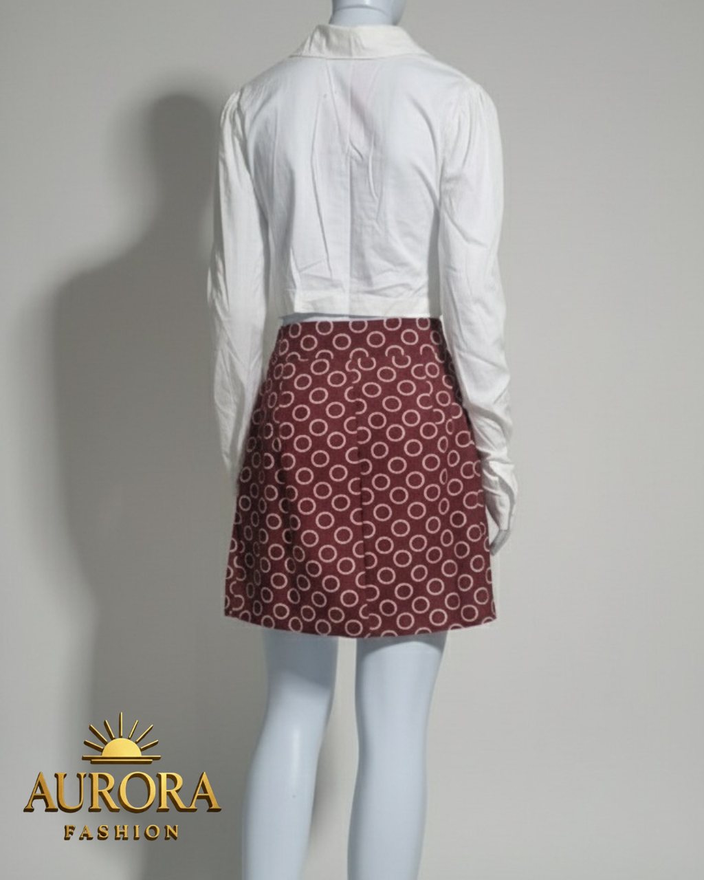 A Saia Vermelha Social Estilosa é a escolha perfeita para mulheres que desejam unir sofisticação e personalidade em um só look. Com modelagem moderna e estampa geométrica delicada, ela traz um toque fashion e elegante para produções sociais ou casuais.